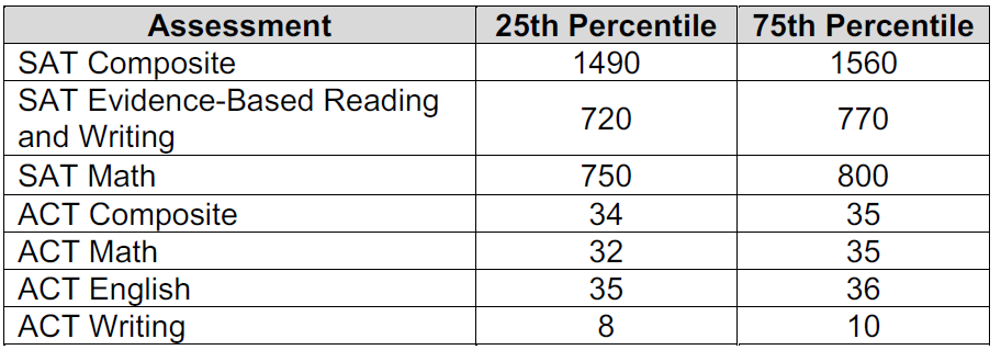哥伦比亚学院和工程及应用科学学院2021年秋季入学的大一学生中,44%的学生提交了SAT成绩,接近30%的同学提交了ACT成绩。