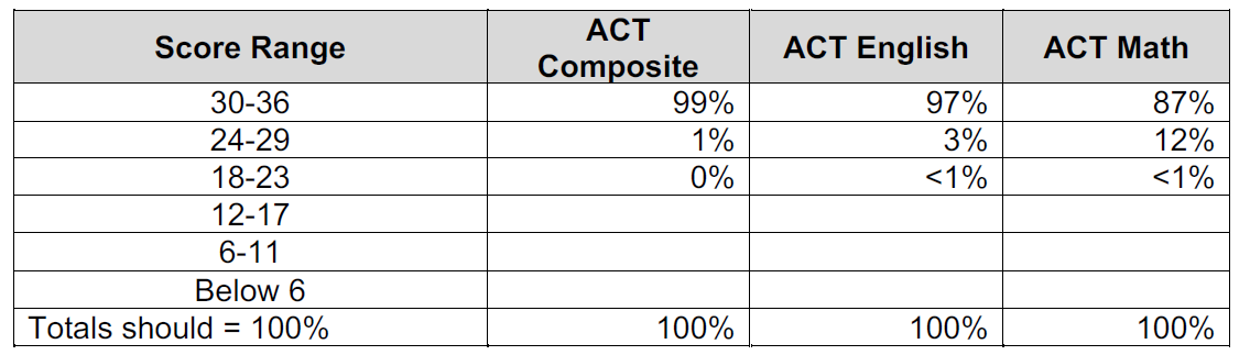 哥大2021年秋的大一学生具体SAT/ACT得分情况如下: