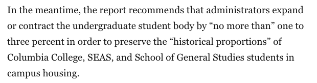 与此同时,报告还建议哥伦比亚大学的本科扩招比例不超过3%。