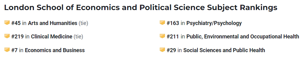 伦敦政治经济学院专注于社会科学和管理学研究,在政商界享有卓越口碑。在政治学、经济学、金融学、新闻传播学、公共政策学、地理学等学科均名列前茅。