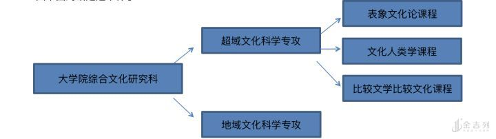比如最牛的学校东京大学,它的大学院综合文化研究科,里面有超域文化科学专攻,地域文化科学专攻。其中超域文化科学专攻里又包括表象文化论课程,文化人类学课程,比较文学比较文化课程。