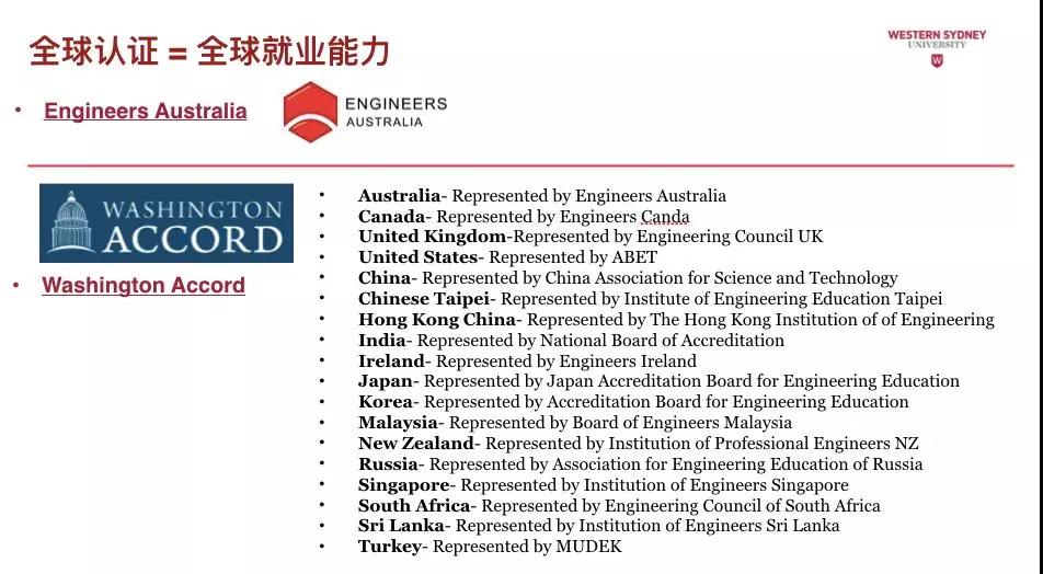 全球认证方面,西悉尼大学的工程课程更获得 Washington Accor华盛顿协议的认证,在多个英美国家以及中国均获得工程师资格认证。