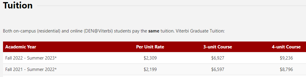 最常申的私立大学为南加州大学(University of Southern California,简称USC),我们再来看USC的硕士项目费用。