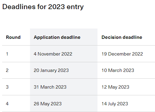 下面就看看英国各主要高校研究生2023Fall申请开放的时间。