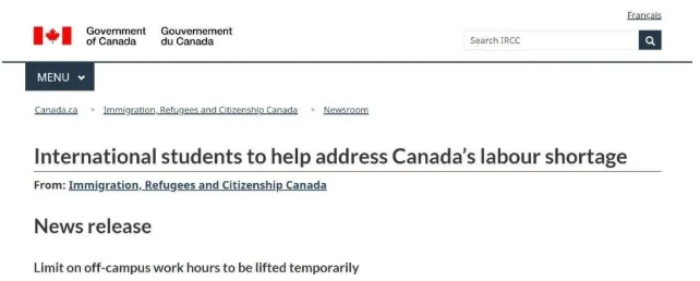 加拿大政府将依靠留学生帮助解决加拿大的劳动力短缺问题,并将暂时取消校外工作时间限制。
