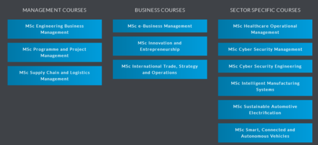华威WMG硕士项目涵盖管理、商业课程和专业课程,包括: