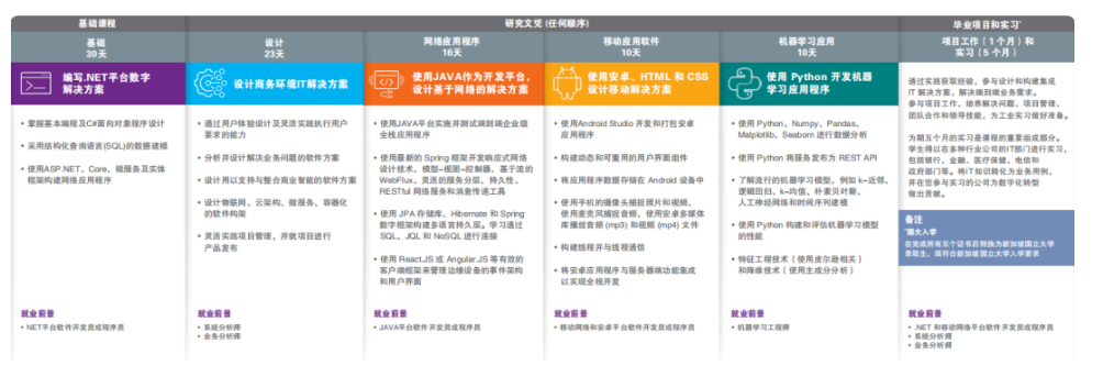 为非IT背景学生提供入读IT课程机会课程适合希望在资讯通信业开创职业生涯的非IT毕业生、想要获得实践经历的IT毕业生。既往的学生教育背景中理科约21%,商科约20%,文科约15%,医疗保健约3%(包括药剂学、护理及医科),除了专业背景不限外,招收学生的院校背景也拓展至国内985院校以外。