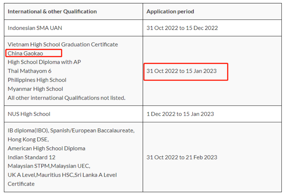 对于参加中国高考的学生来说,申请时间为: 2022年10月31日至2023年1月15日