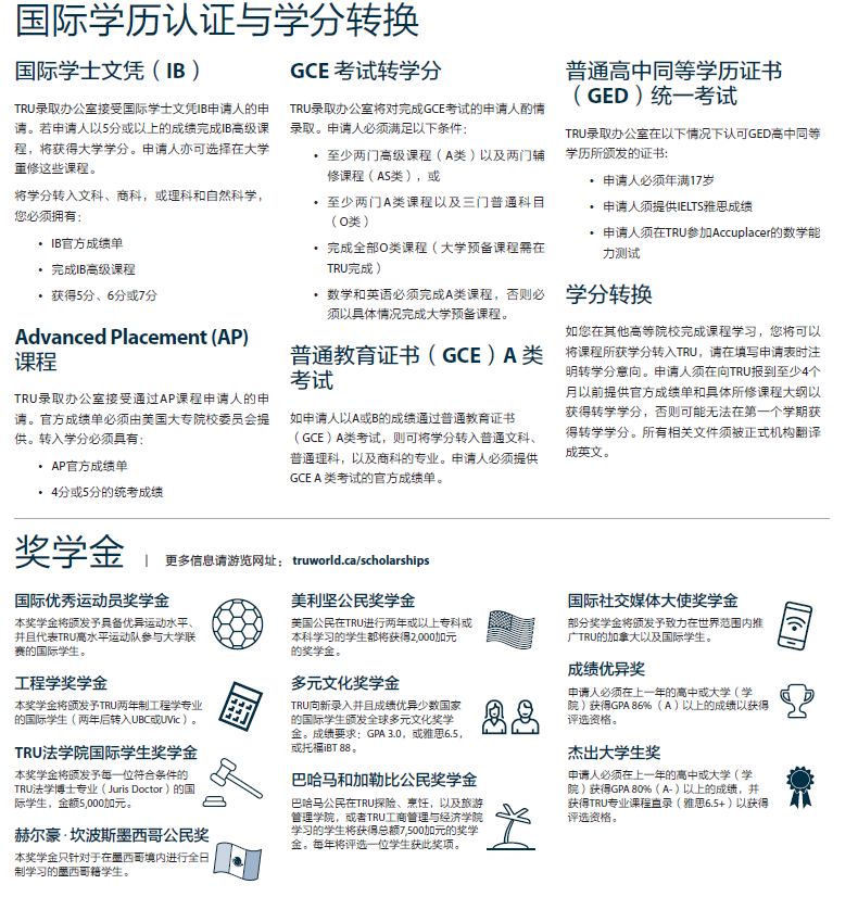 汤姆逊大学(TRU)致力于高等教育的教学品质,追求卓越,为学生未来之成功提供全方位支持。汤姆逊大学(TRU)敞开怀抱,容纳多彩世界与缤纷文化,积极促进跨文化交流与理解,共享多元思想。