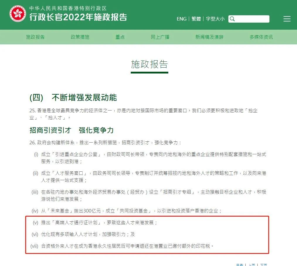 过去两年,香港地区劳动人口流失约 14 万人,为吸纳全球优秀人才、留住人才,在本次《 2022 施政报告》中,香港政府对【抢企业、抢人才】方面做出如下计划: