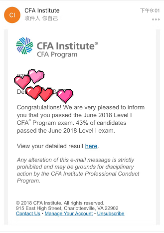 CFA 分为 3 个级别, level1 是最基础的级别,但是这个小傲娇也不容易考取的。考试范围分成 10 个课程来考,一天之内考完,全英考试(经由何锦清老师本人测试过,当时雅思 5.5 的英语水平去考试也是基本能看下来)。成绩在考试后 45 天全球统一发成绩(北京时间 9 点)。一级只能在本科毕业之前一年才能报名考试,想要考第二级别一定要求本科毕业才能考。