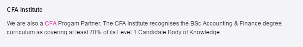 例如华威的大学,跟商科有关的课程都是有 CFA 协会的认证的,基本本科的商科专业有 70% 的课程与 CFA 的 1 级有关。