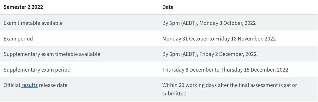 这个是总时间表,关于每一科目的具体信息,可以通过 my.unimelb 进入自己的考试科目页面,查看如下信息: