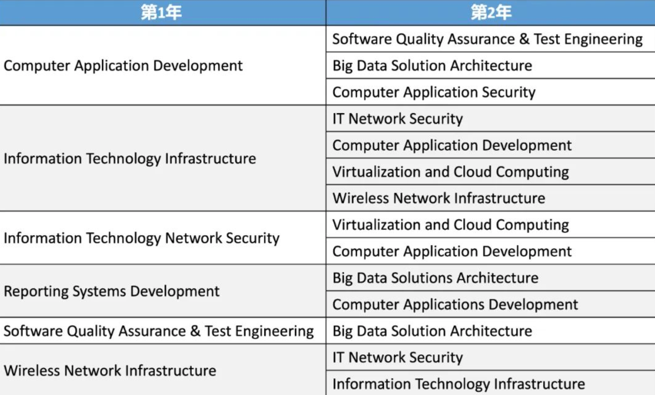 方案二: 1年制研文+1年制研文申请双专业组合配搭方案如下 (* 针对没有计算机学历背景人士,希望进入计算机研文专业实现转码梦想,可先考虑申请Computer Application Development计算机应用开发作为第一个就读专业。)