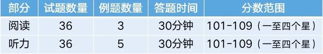 一阶和二阶的题型基本相同,词汇量分别要求1200个和1800个,阅读和听力题目个数都是36题,考试时长各题型30min。二阶的文章篇幅相对长一点,难度高一点,但两阶考试最终的目的都是让学生达到英语学习的核心目标——沟通。