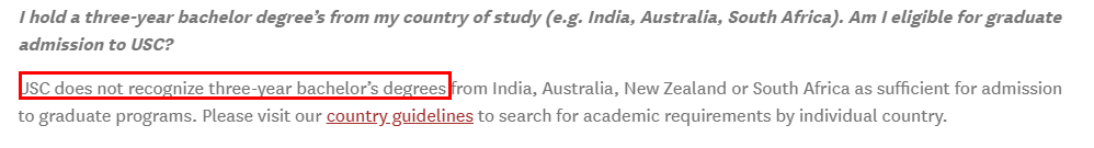 但是少数学校明确不接受三年制本科,比如南加大: