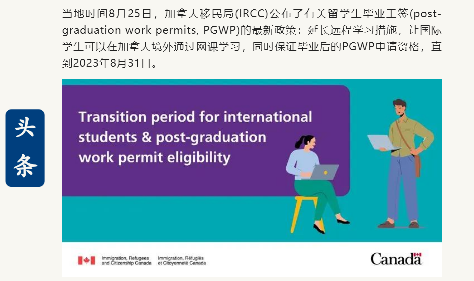 目前已经在加拿大境外进行在线学习或在2022年8月31日提交学签申请的同学,可以继续在境外完成100%的线上课程,且不影响毕业后的PGWP申请。