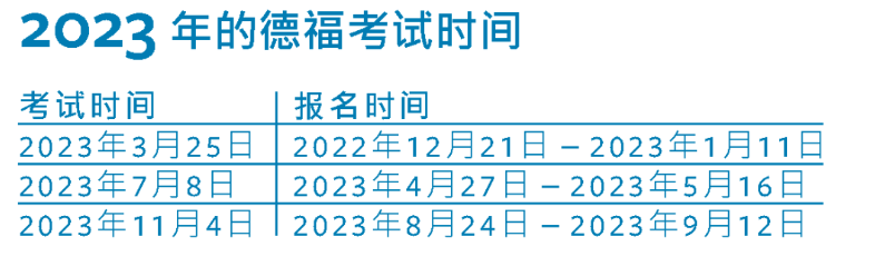 根据德福考试院官网的最新信息,2023年德福考试时间和报名时间如下,请同学们合理安排自己的时间!密切关注德福考试院以及中国教育考试网。