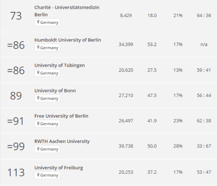 而且,这次还有更多的德国大学进入了全球TOP100、200的位列当中~