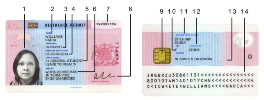 作为留学生抵达英国后,需要在十天内及时领取的最重要文件之一的BRP生物信息卡,包含了持有人的姓名、出生地、出生日期、照片、指纹、和详细的签证信息,相当于留学生合法在英国居留的身份证。