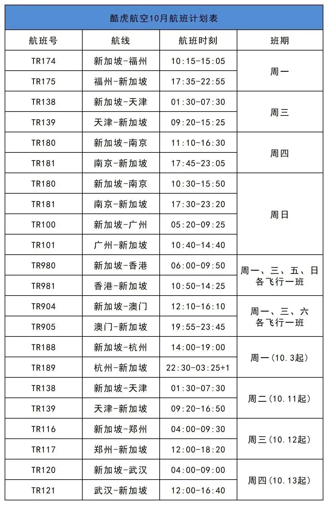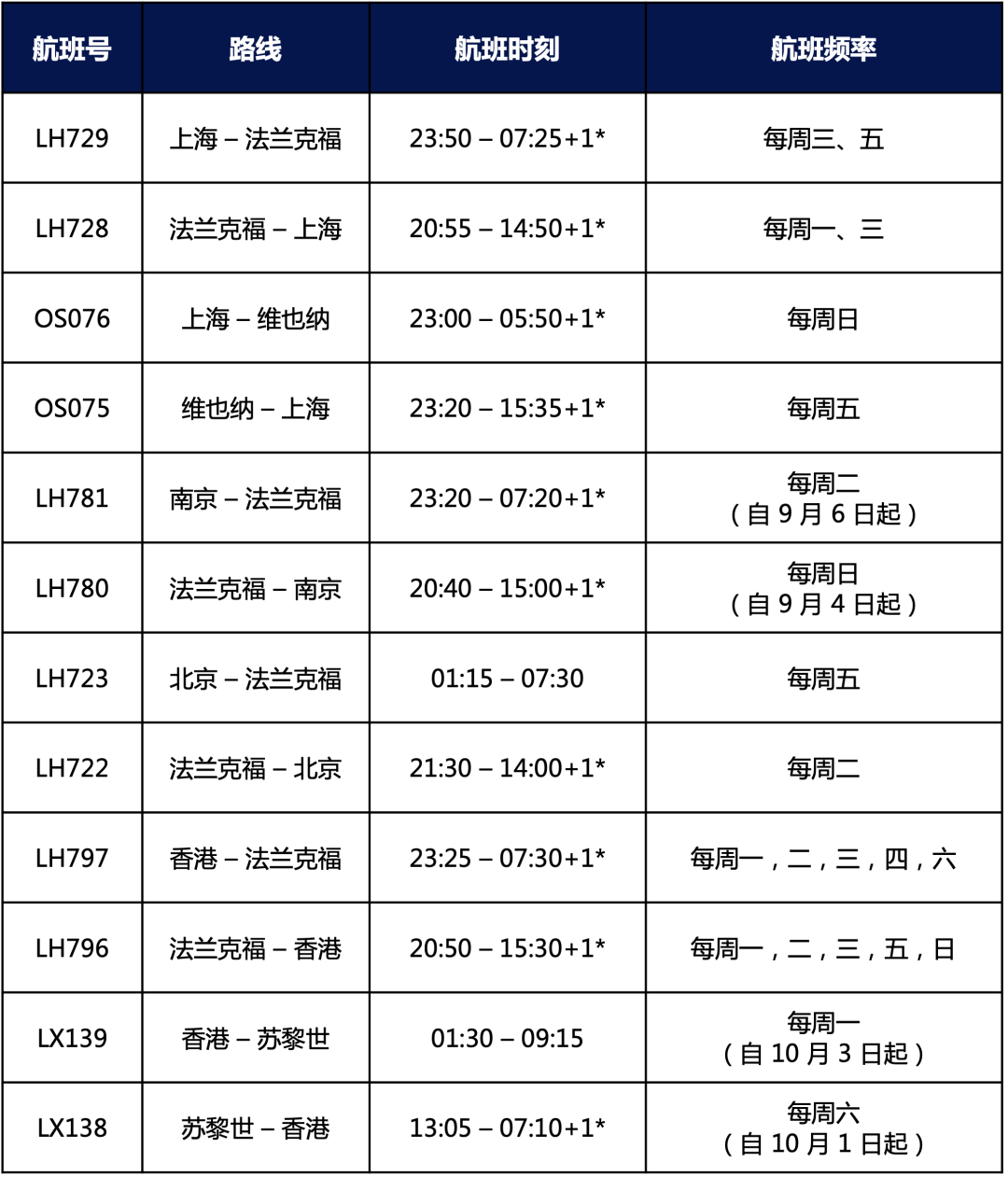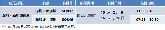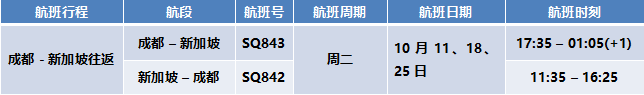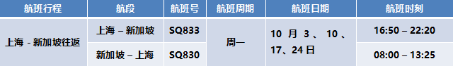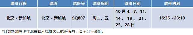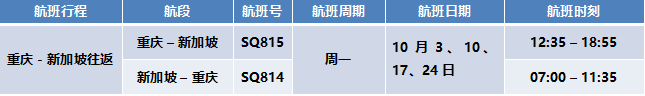 2022年10月1-29日期间在中国内地将运营以下航线及航班(以下时刻均为当地时间):