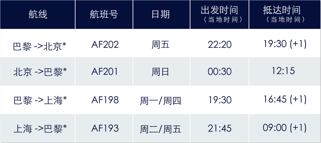 法航最新航班时刻表: