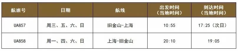 美联航目前执行一周四班上海飞往旧金山的定期航班: