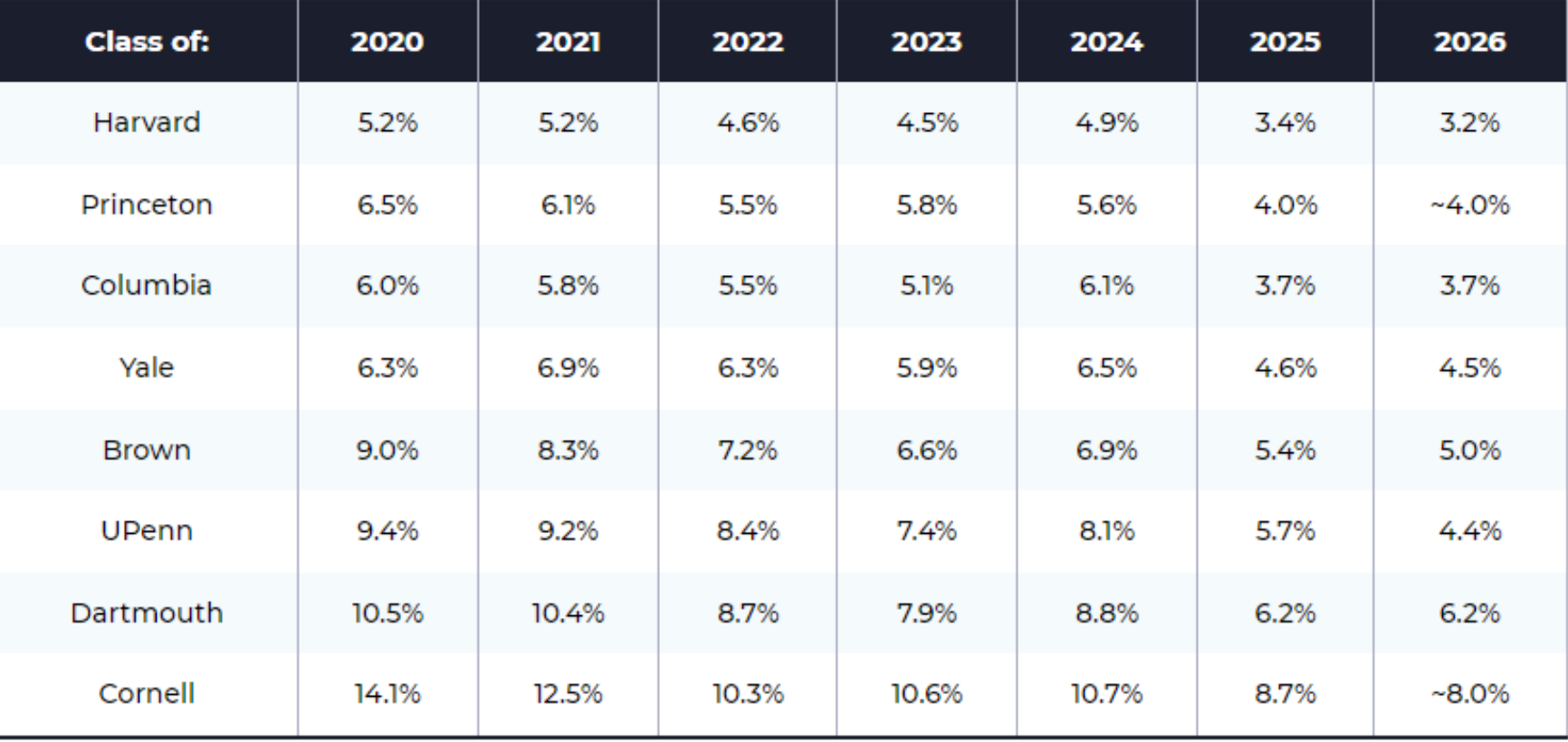 近7年藤校的录取率