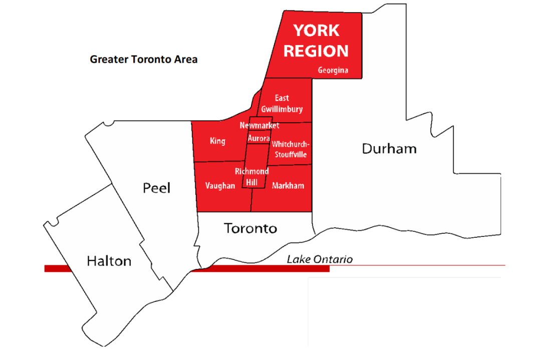 约克区包含Markham,Vaughan,Aurora,Newmarket,