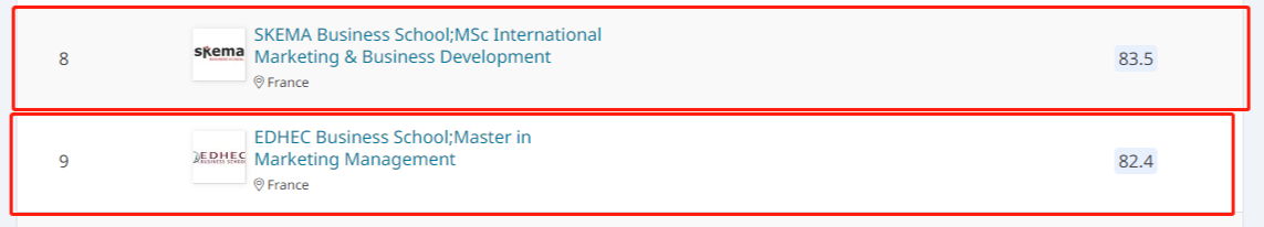 法国在市场营销领域也丝毫不示弱,看下图,这不是法国有6所商学院都争先恐后挤进全球top10,而且Marketing专业背景要求不那么高,想学你就申请哦!