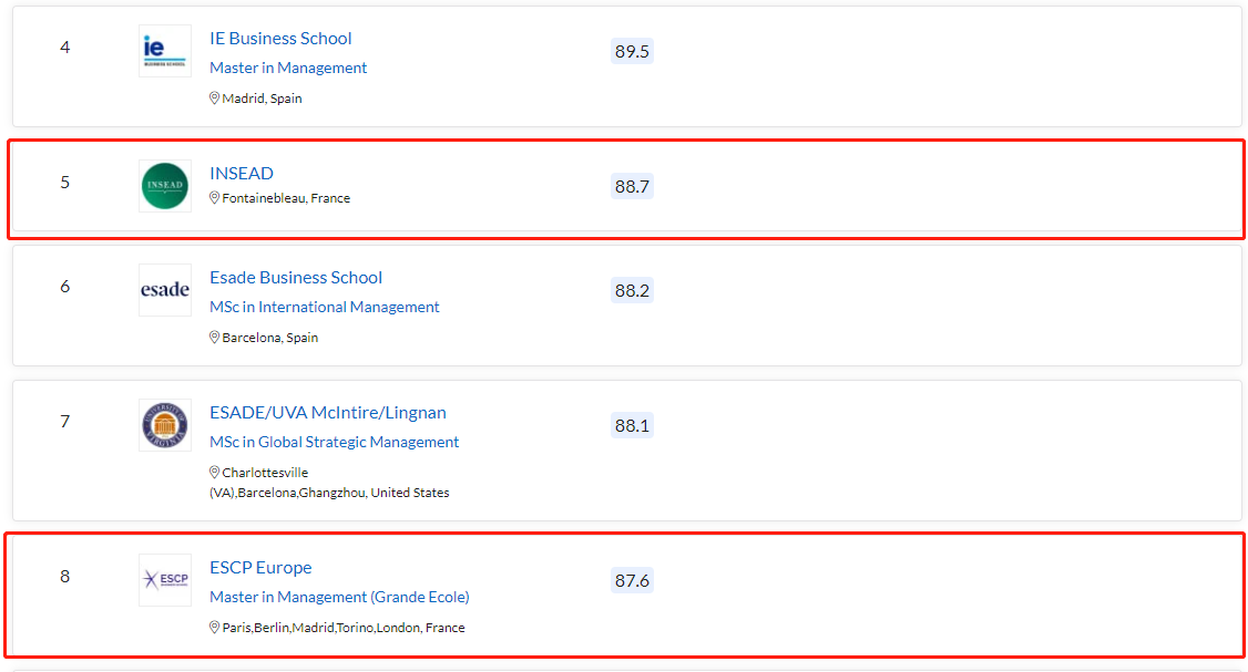 法国巴黎综合理工和HEC合作的项目和ESCP商学院的商业分析硕士分别拿下第3和第6的好成绩!! 如果有对商业分析硕士感兴趣的同学,不妨考虑一下这两所世界Top4的商学院