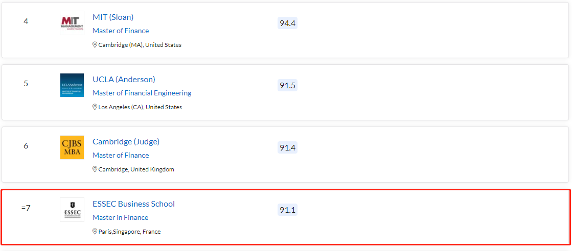 法国HEC Paris位列金融硕士榜首,ESSEC商学院的金融硕士也在世界最好金融硕士中排在非常靠前的位置 ,法国历来以金融硕士享誉世界,所以,要读金融硕士一定要来性价比较高的法国商学院