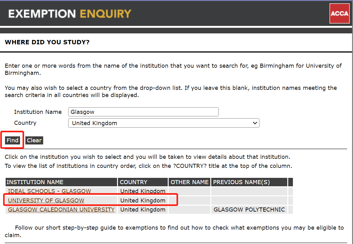 首先:登录ACCA提供的豁免考试科目查询平台: