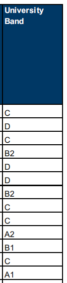 1. 中国大学分为A1 A2 B1 B2 C D TNE 7类,TNE为合作办学。不同等级对应不同分数类型