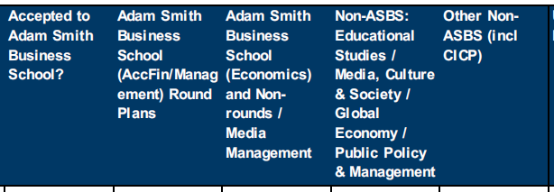 2. 同一中国院校申请格大不同专业,录取分数要求分为4档,商学院2档,非商学院2档。