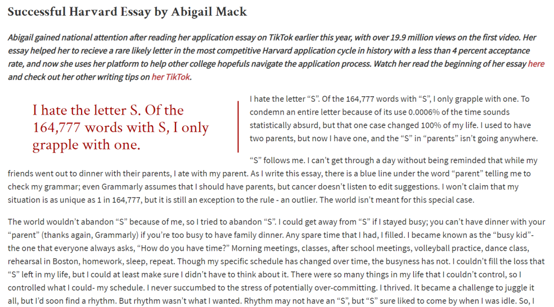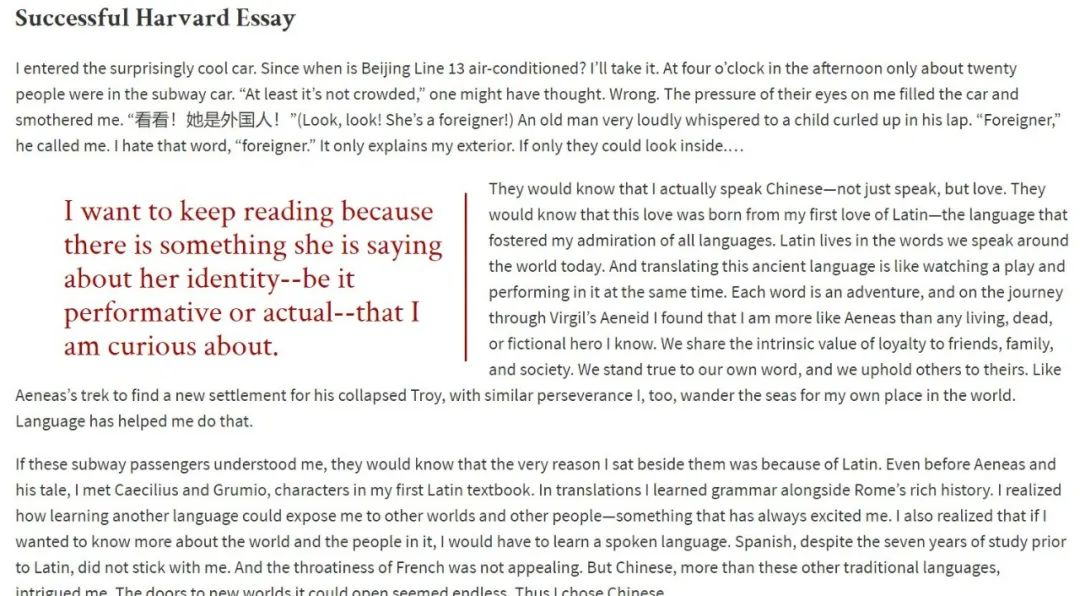 哈佛大学校报《The Crimson》每年都会邀请哈佛新生分享自己的申请文书,并从中精选10篇最佳文书进行点评发布。这些文书代表了大学招生官所寻求录取的学生的重要品质或特性,有非常高的参考价值。