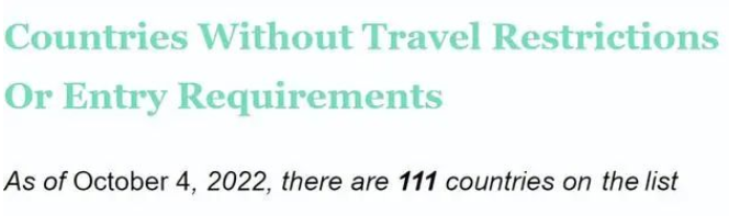 最新国家和地区名单:巴巴多斯、泰国、巴哈马、加拿大、黎巴嫩、博茨瓦纳、卢森堡、韩国、摩洛哥、安圭拉、柬埔寨。111个国家和地区,也就是说,世界上大多数国家和地区已经完全取消了新冠入境限制。憋了三年的人民终于可以携带护照,买到去其他国家和地区的机票了!