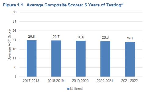 2022年ACT平均分为19.8分,是近五年来最低水平,创下30年来新低。