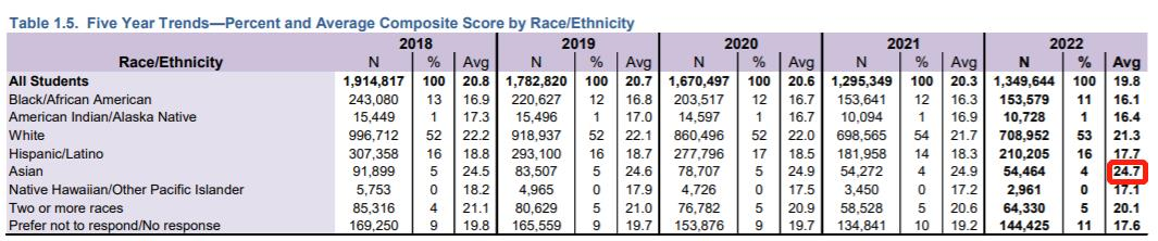 在2022年ACT年度成绩报告中,亚裔考生表现是最亮眼的。