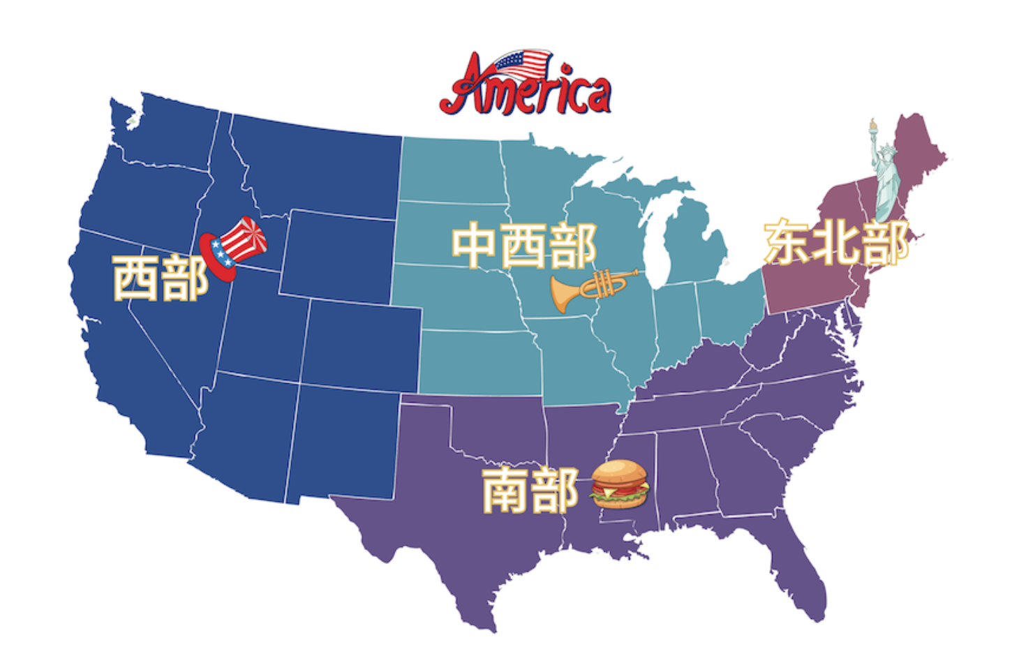 美国南部,也被称为美南、迪克西或者南部(英文上常被叫作The Southern Unite States, Dixie, the Southern States, the American South, the Southlan, or the South) 。它不仅是一个地理上的概念,同时也是一个文化上的概念,因为南部有着美国最独特多样的人文、历史、音乐、艺术特点和烹饪风格等。