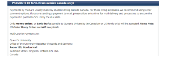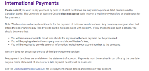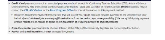 另外,女王大学也有几种不接受的付款方式,比如信用卡,现金,支票,Paypal,电子邮件转账等。