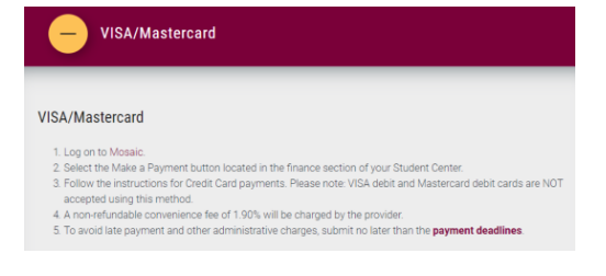 另外,也可以通过刷信用卡VISA/Mastercar的方式付学费,但是注意,要收取1.9%的手续费,这还是比较吃亏的。所 以相比较而言,一般的家庭会选择西联/CIBC汇款的方式。
