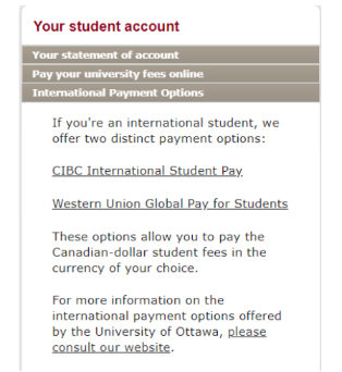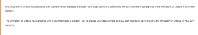 渥太华大学非常简单直接,接受两种付款方式, 一种是西联汇款,一种是CIBC付款。