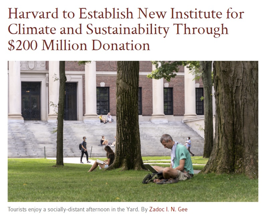 新增研究所:Salata气候与可持续发展研究所 今年6月,哈佛大学宣布将利用2亿捐赠美元在今年秋季开设Salata气候与可持续发展研究所。 这是一个开创性的新实体学院,该研究所将推动和促进哈佛所有学院的研究计划,并实现气候和环境的全面跨学科教学,为对气候变化和可持续发展感兴趣的同学提供更多的学习机会。