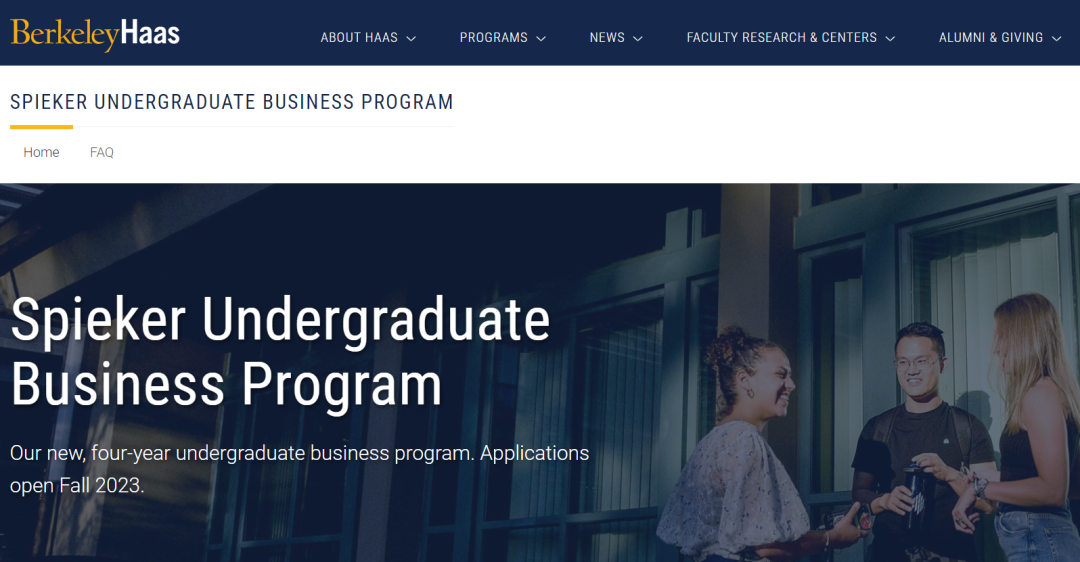新增本科专业:哈斯商学院-四年制本科商科项目 哈斯商学院在最新U.S.News本科商科排名中高居全美Top 2,综合实力仅次于宾大沃顿商学院。细分专业中,商业管理和创业学全美Top 3,商业分析和定量分析全美Top 5,金融、市场营销、房地产、国际商务等均在全美前10。