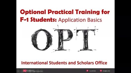 壹丨参加ISSO举办的OPT讲座 波士顿大学国际学生学者办公室(ISSO)为想要申请OPT的BU国际学生制作了讲座视频,对申请流程中的每一个环节都做出了细致的讲解。