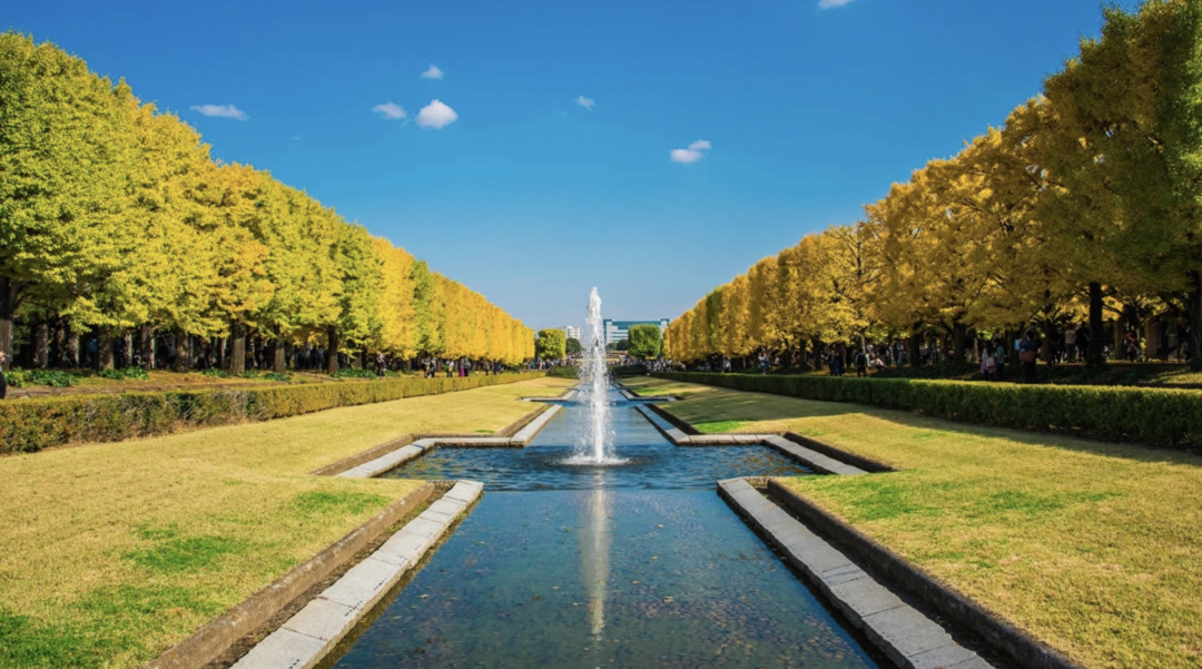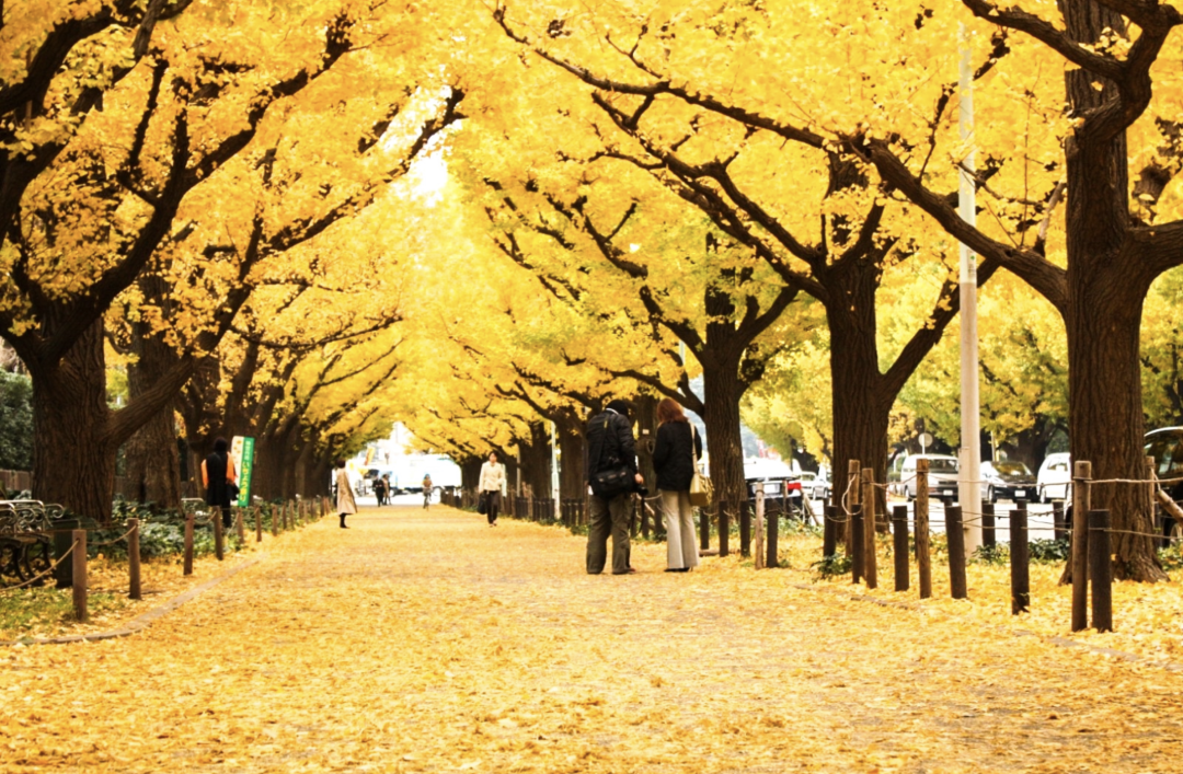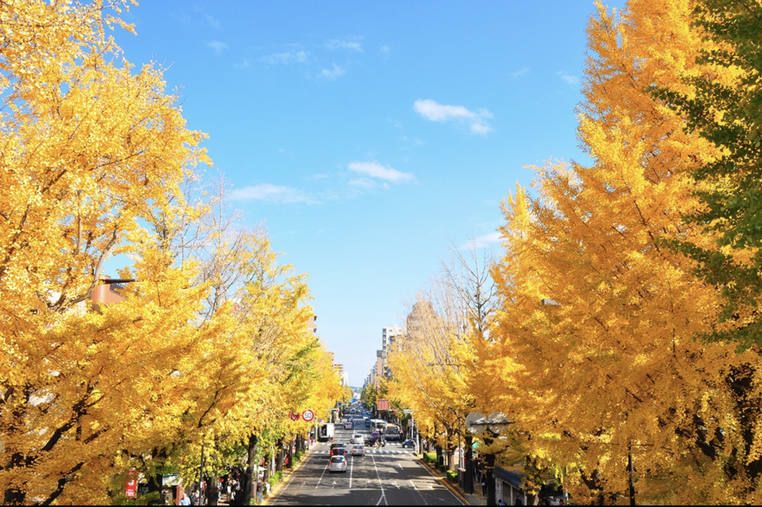 东京最有名的银杏大道!从青山通口开始大约300米的路上种着146棵银杏树,树龄过百年,每到黄叶时期都会吸引大量的游客前来观赏。