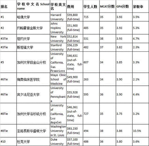 2.GPA :对一般的申请者而言, GPA3.0 以上,对前 10 名的医学院, GPA 至少为 3.6 左右。