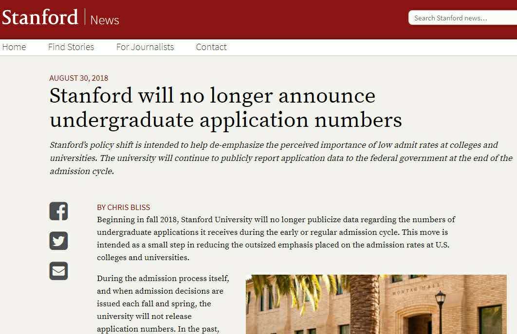 斯坦福大学不再就申请、入学、录取等数据发布新闻通告