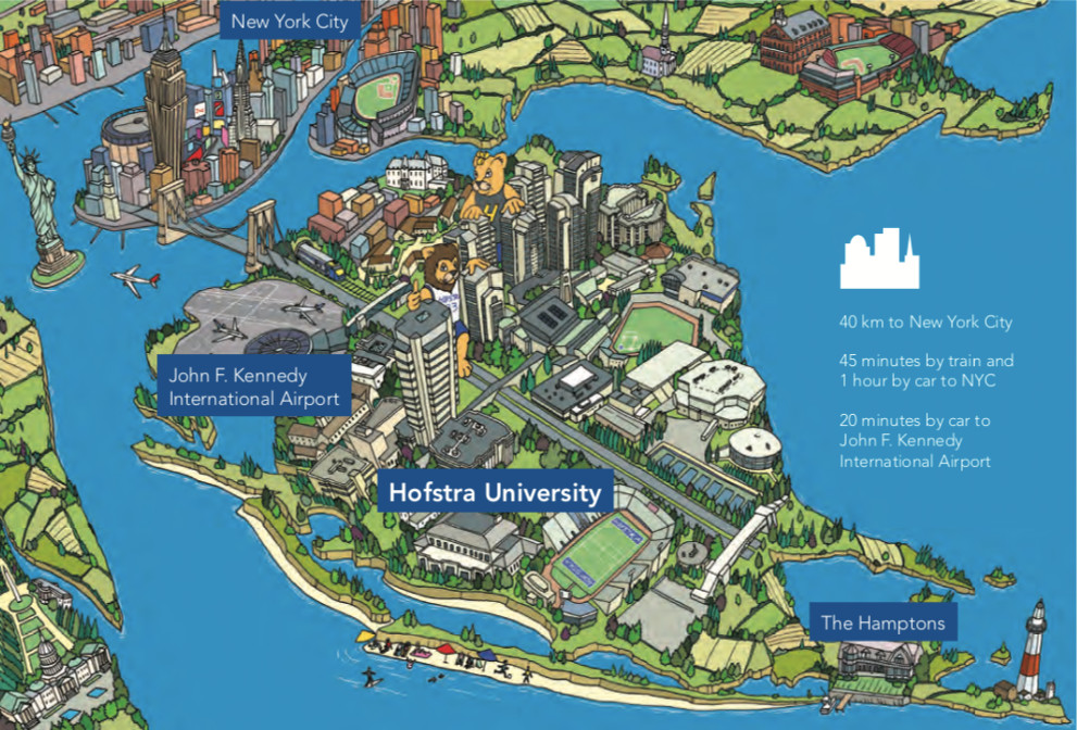 除此以外Hofstra也是唯一一所连续三届举行总统辩论的大学,于2008年、2012年、2016年连续三次主办了美国总统竞选辩论,最近的一次(2016年)就是特朗普与希拉里的辩论。
